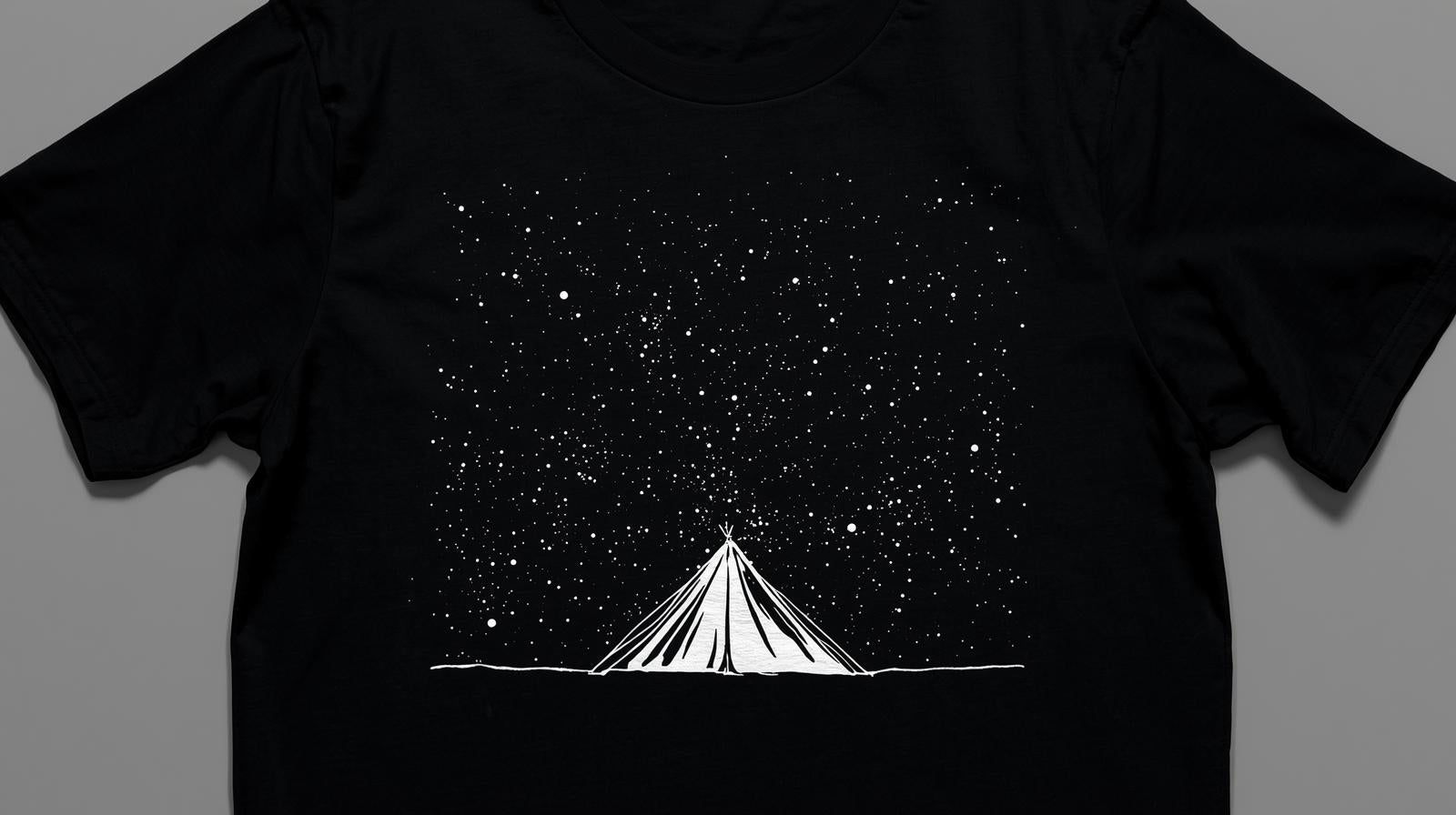 A camper tent in the middle of nowhere with an enormous night sky full of constellations above. Romantic and wanderlust-driven.