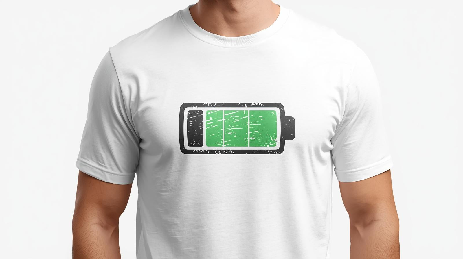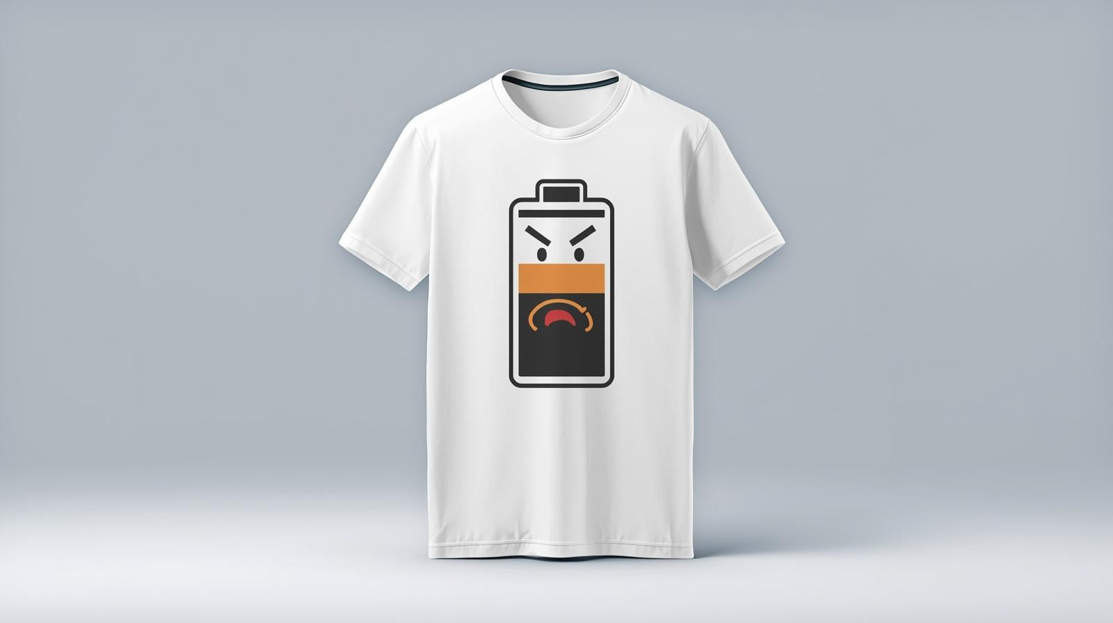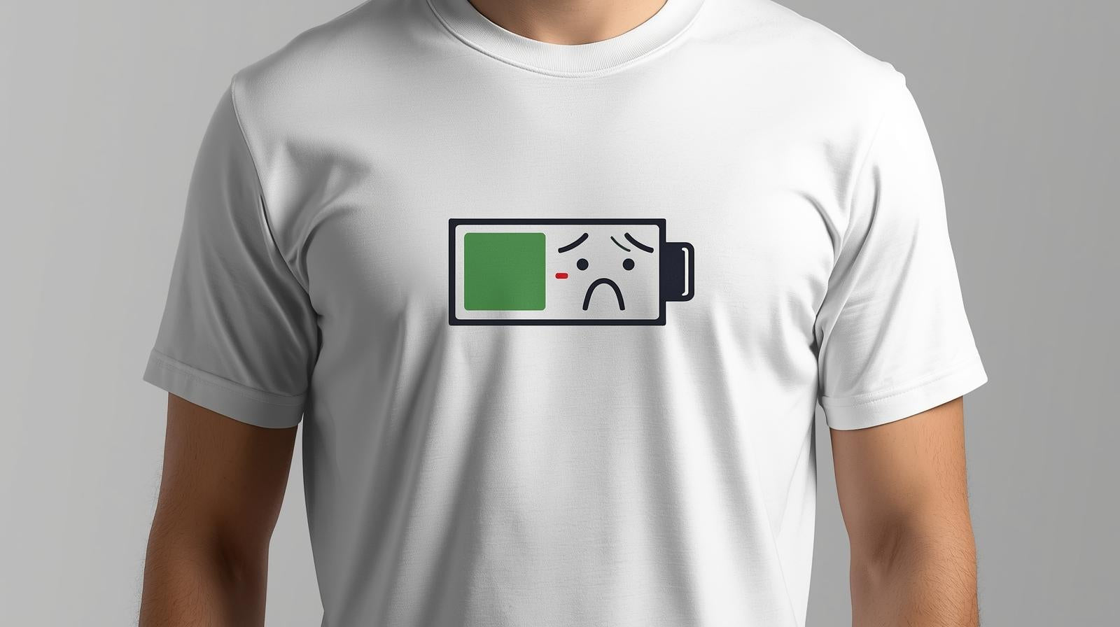 A battery icon almost empty, paired with a stressed cartoon face. Humor meets reality — perfect for millennials and gen z.