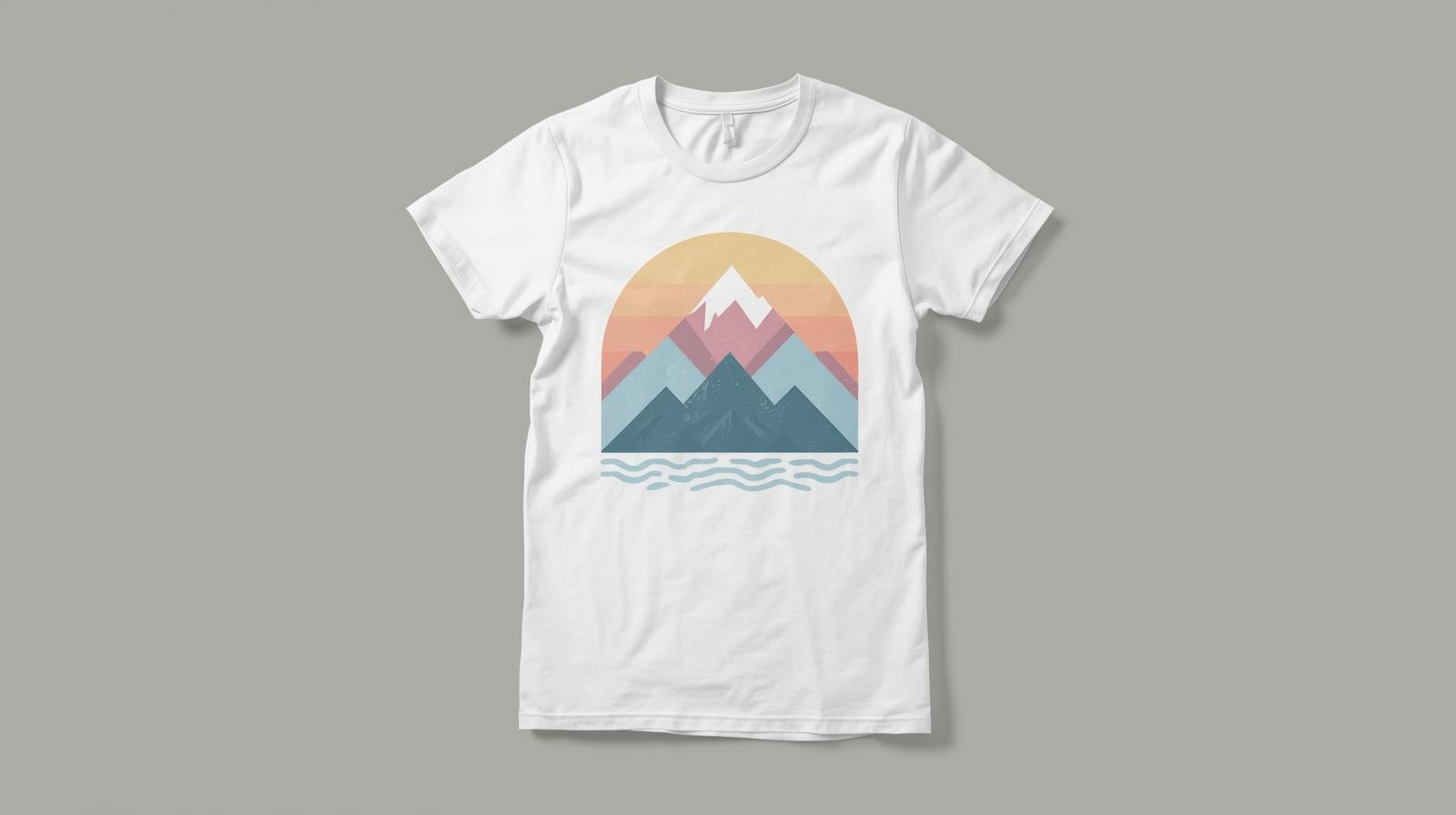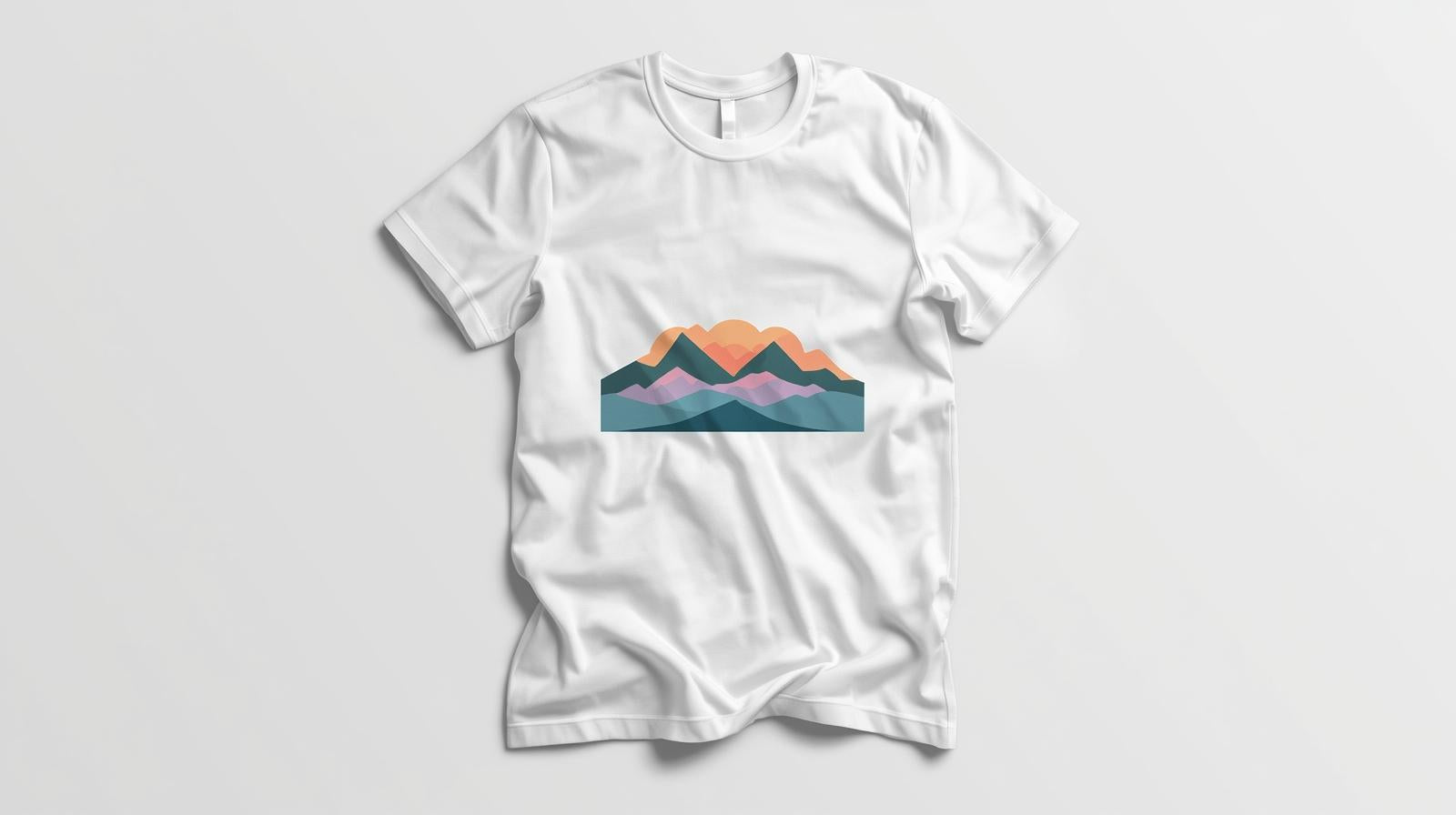 Layered mountains fading into the horizon, each in a different pastel hue, with a rising sun on top. Calm and meditative aesthetic.